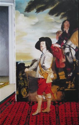 Vermeer, chaussettes avalades, croque en gourmand la paume de sa main, le cou d'une chamelle, son propre justaucorps a crevés. Pour la visite d'un Charles 1er qui descend de son Van Dyck, Bruno n'a pas craint de glisser sous les bottes royales le kilim polonais de Gizela.
