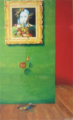 Dromadaire apres dromadaire, vers le Désert de Retz, les toiles magiques s'acheminent. "l'Atelier" presque vide résonne de ses 8 metres cubes 125 comme une peche déménagée dont on hésite a refermer pour toujours la porte. Chambourcy jalousement recueille en ses murs le monde de Bruno. Des juillet prochain, peut-etre, je le reverrai préparant soigneusement les sacoches de vélocipede, s'élançant a nouveau vers l'autre monde, qu'il peindra.